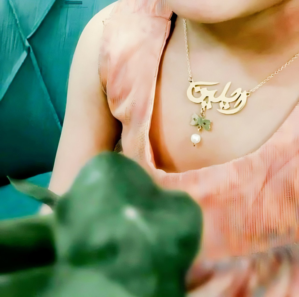 سلسال اطفال مطلي بالذهب او الفضه منحوت عليه إسم طفلتك وتنسدل منه حبة الؤلؤ يعلوها شكل فراشة متوفر حسب الطلب