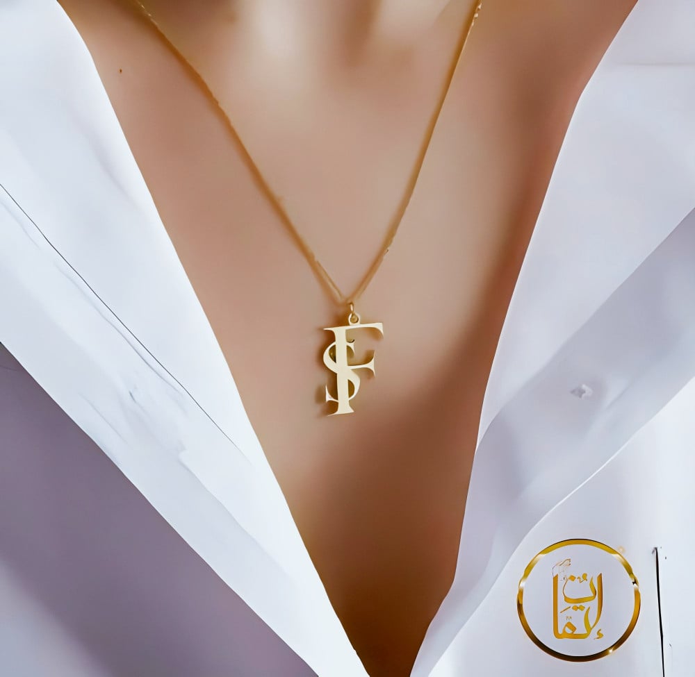 تميزي بارتداء سلسال منحوت عليه حرفك وحرف حب حياتك واي حروف تبينها متداخلة مع بعضها بشكل مزدوج مطليه بالذهب أو الفضة