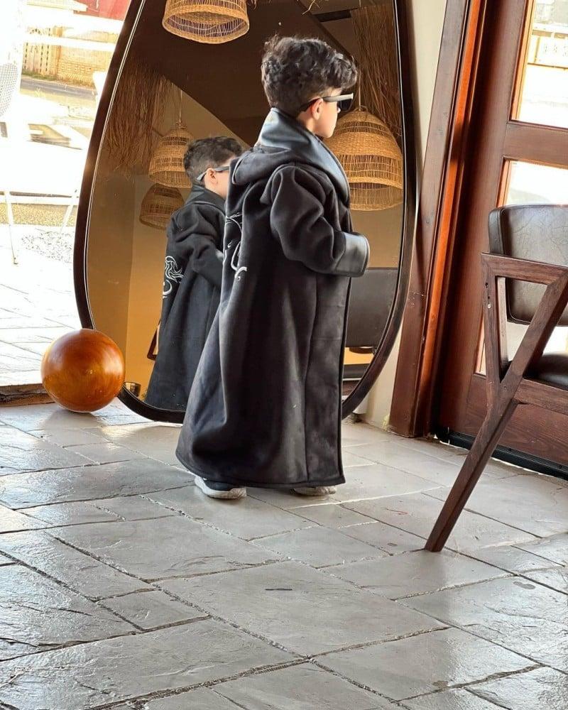 فروة أطفال بأطراف جلد هي الخيار المثالي لأطفالك خلال الأيام الباردة. تتميز بكونها مبطنة بفرو داخلي ناعم يمنح طفلك دفئًا استثنائيًا، مع قماش فاخر يوفر الراحة التامة. يأتي التصميم مع أطراف جلدية تضفي لمسة من الفخامة على الفروة، مما يجعلها قطعة شتوية مميزة. كما يمكنك تخصيص الفروة بإضافة اسم طفلك بكل سهولة حسب الطلب، لتصبح قطعة فريدة تعكس ذوقك الخاص.