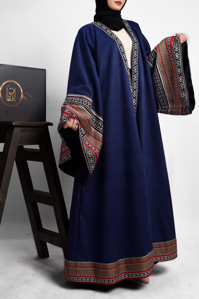فروة شتوية شمواه لون كحلي مع تدخيلات السدو نسائية