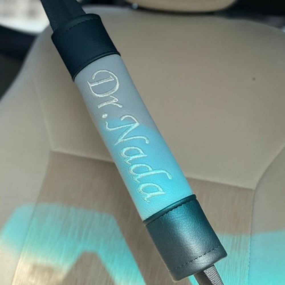 مسكة حزام أمان مقاومة للماء والتعرق مع الاسم مطرز باتقان واحترافية باحدث مكائن الليزر يتم تطريز الاسم او العبارة الي تبيها باي لغة حسب الطلب يتوفر لدينا أجمل أكسسوارات السيارات والهدايا الرجالية والنسائية والاطفال مصممة خصيصا لكم بالاسم